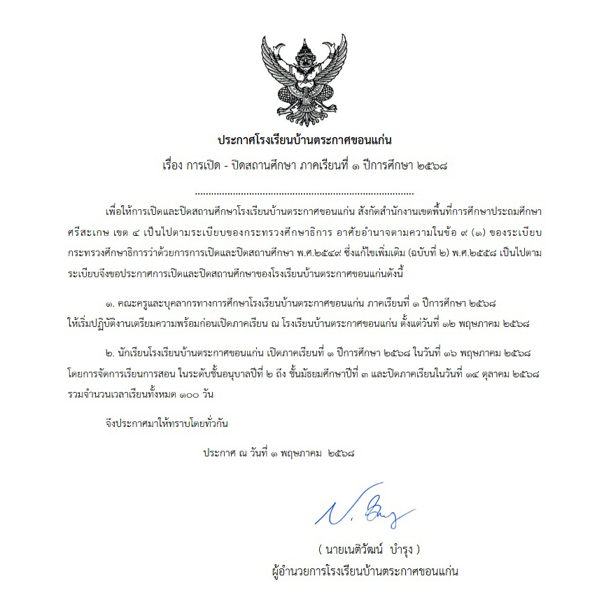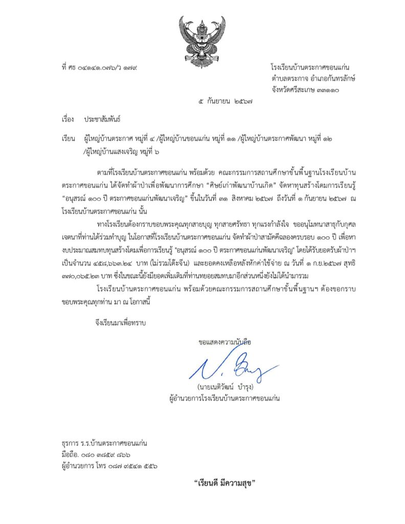 ประกาศโรงเรียนบ้านตระกาศขอนแก่น